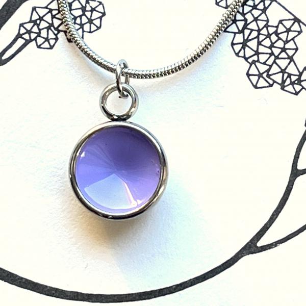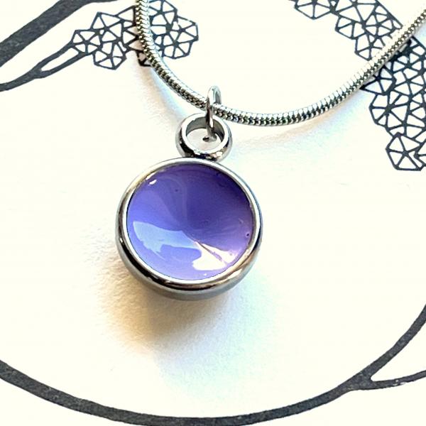 Preview: Zierlicher Schalenanhänger mit Flieder Kontrastfarbe – Edelstahl – inklusive Kette