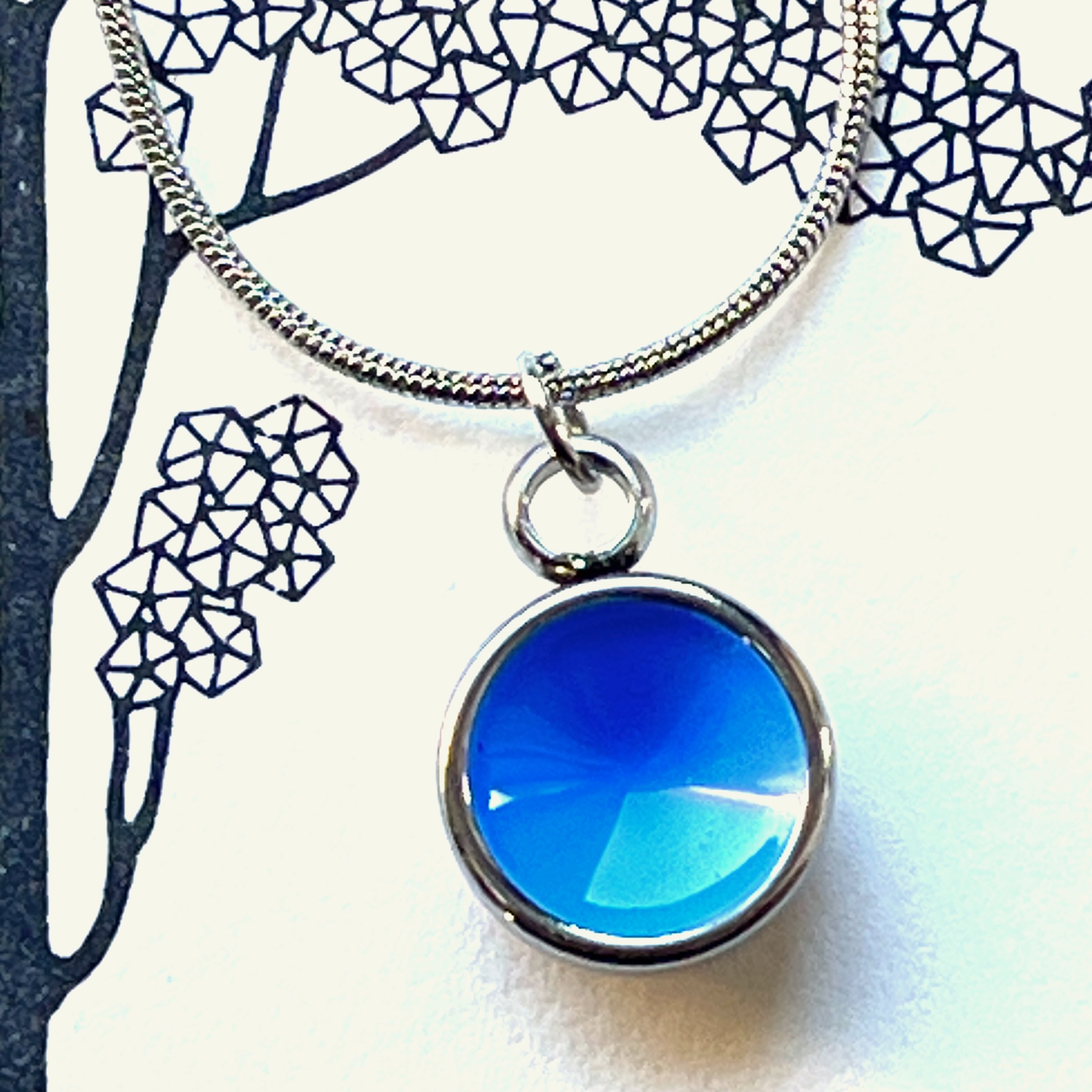 Zierlicher Schalenanhänger mit Hellblauer Kontrastfarbe – Edelstahl – inklusive Kette