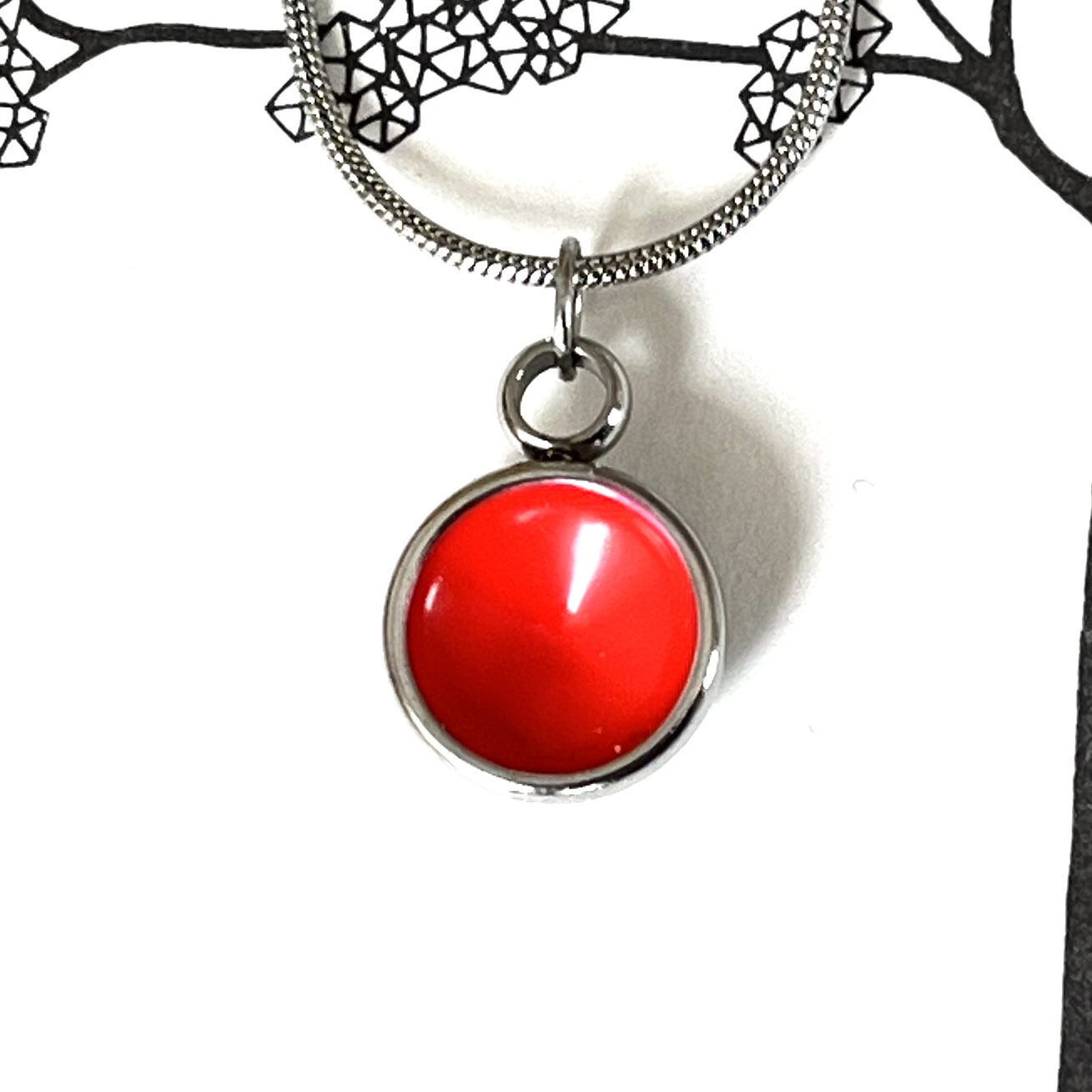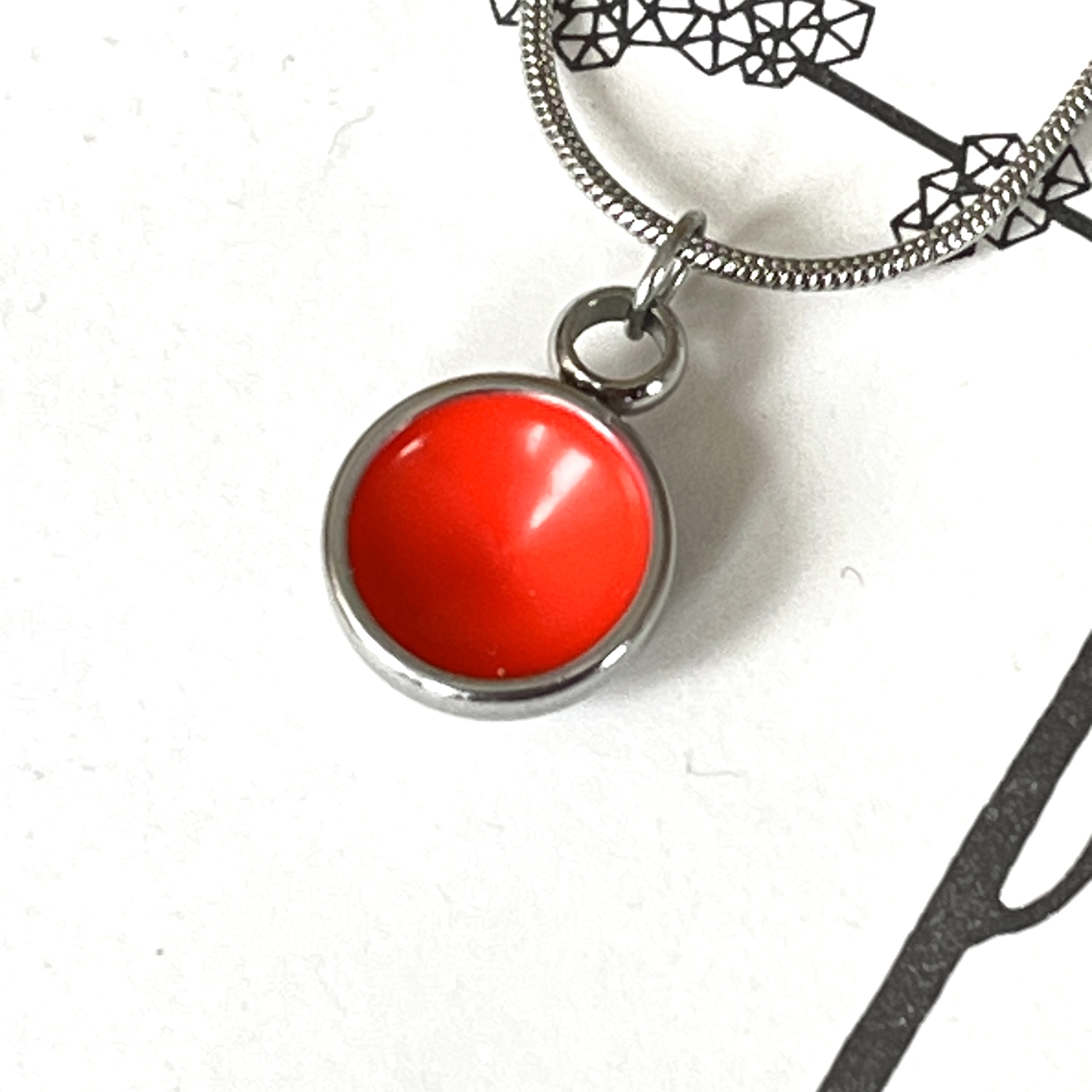 Dieser kleine Anhänger aus Edelstahl vereint minimalistisches Design mit einem faszinierenden Spiel von Licht und Farbe. Die konkave Schalenform erzeugt eine optische Täuschung – mal wirkt der Anhänger wie eine zarte Kugel, mal wie eine kleine Schale. Innen ist der Anhänger farbig lackiert.