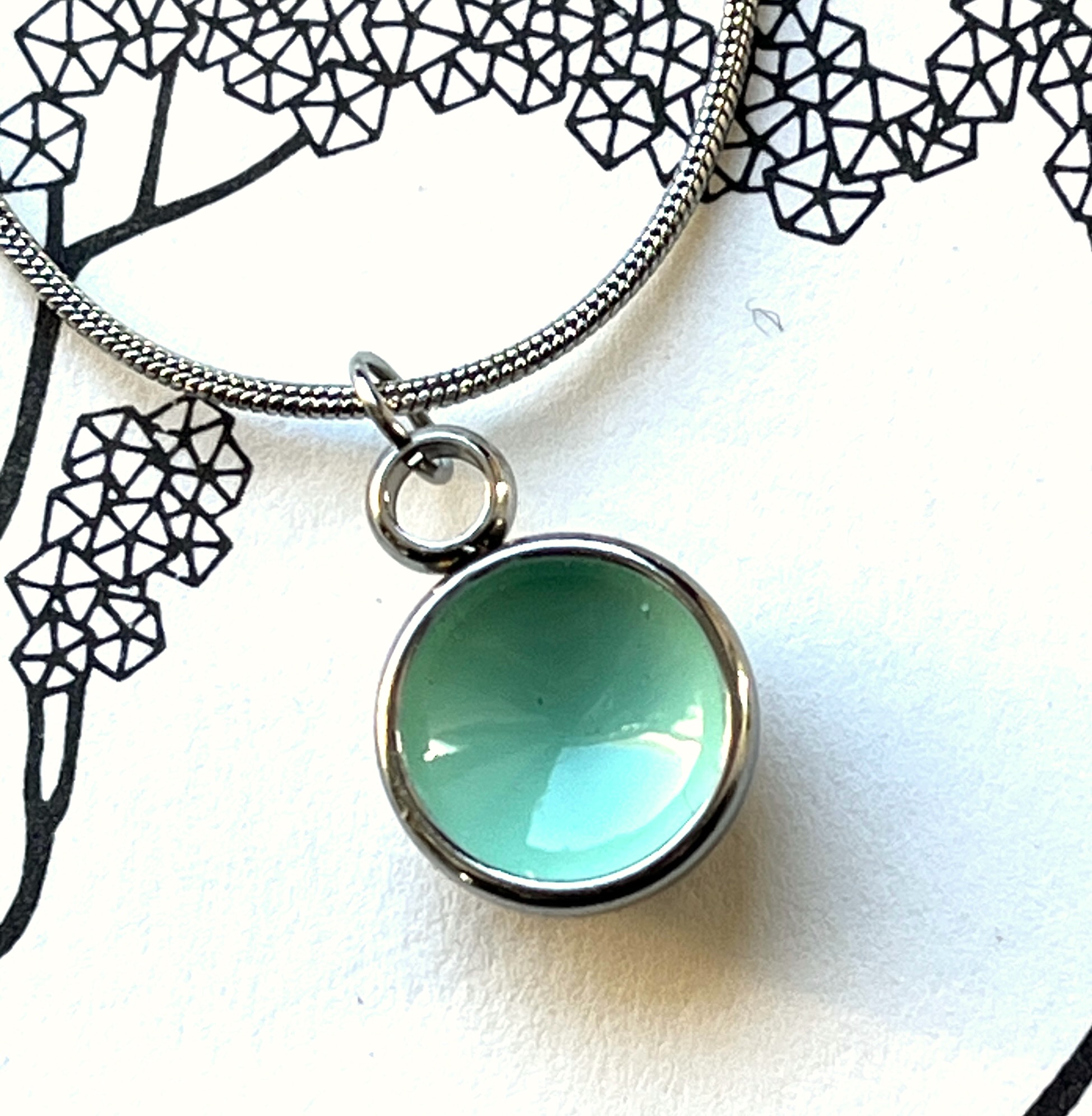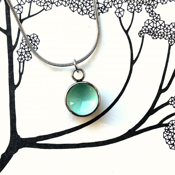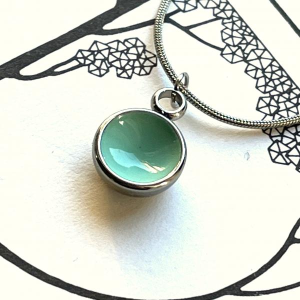 Preview: Zierlicher Schalenanhänger mit Kontrastfarbe in Türkis – Edelstahl – inklusive Kette