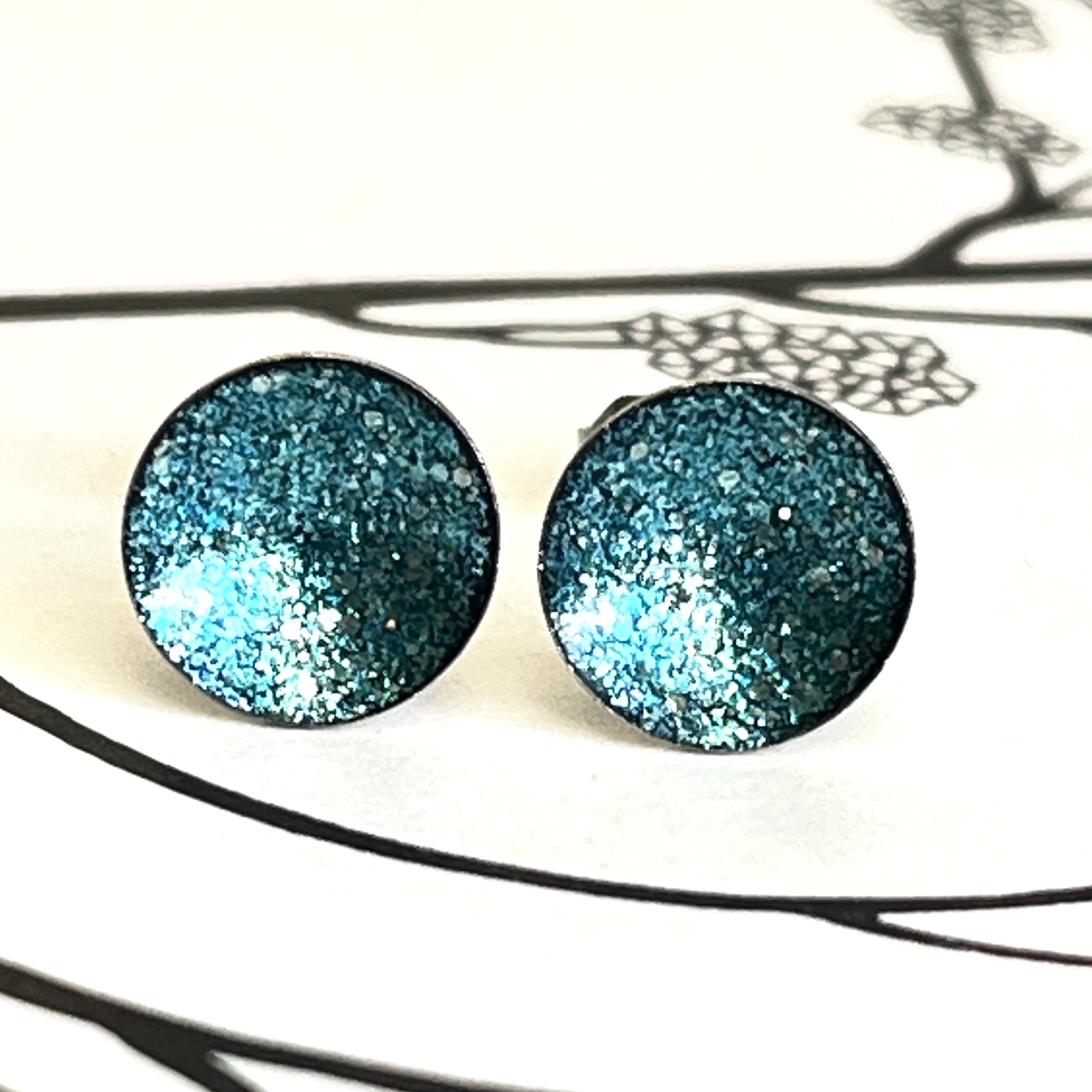 Diese kleinen Ohrstecker sind konkav geformt und innen mit schillernder Farbe lackiert.