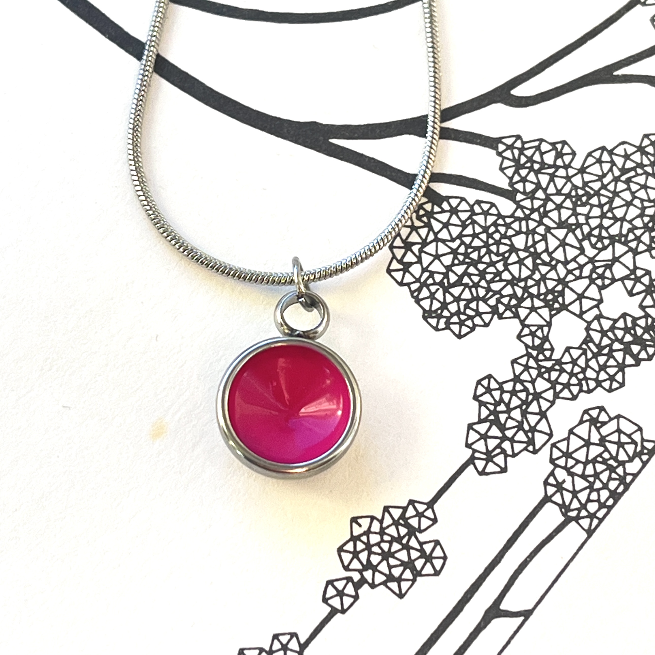 Fuchsia farbener Anhänger mit zierlicher Kette