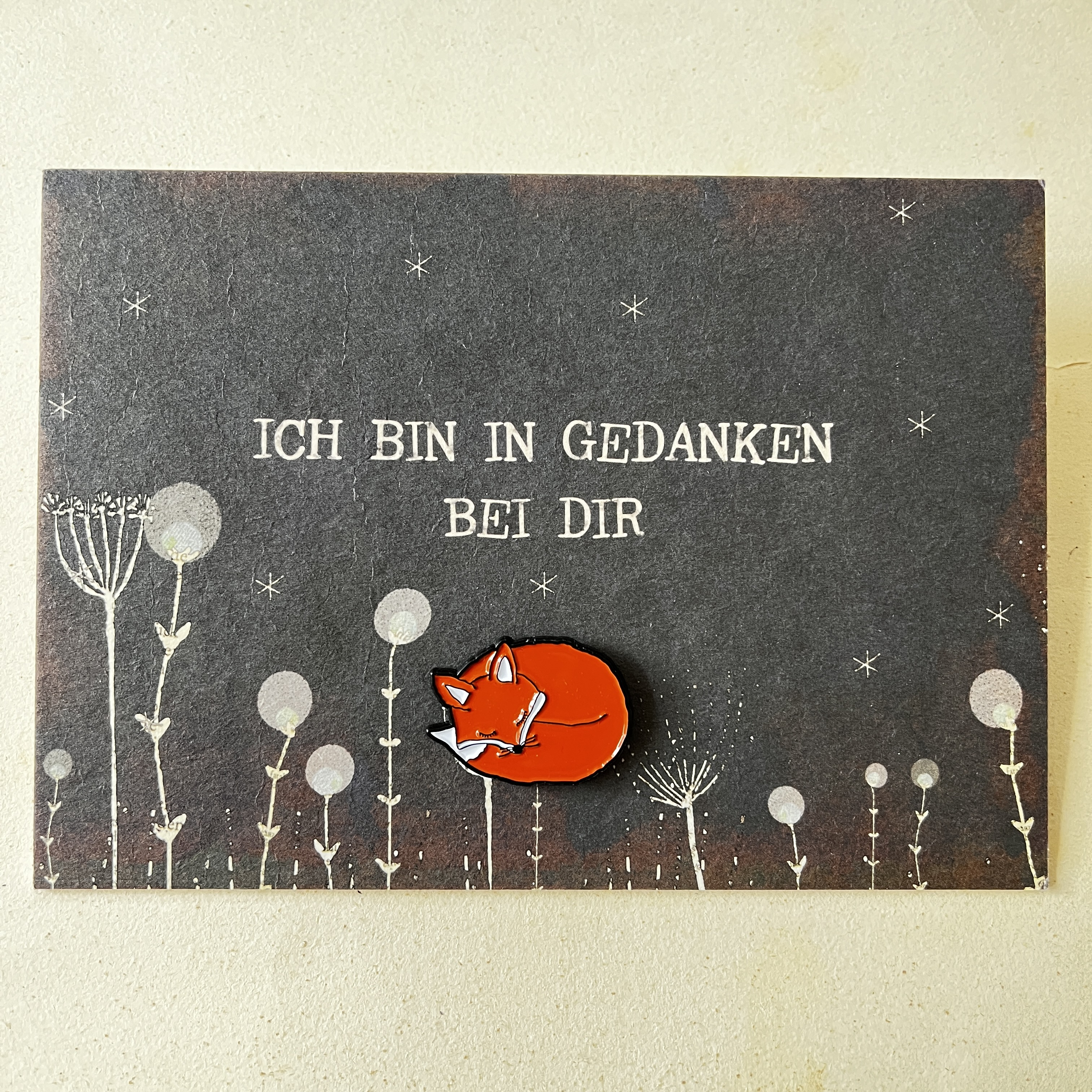 Preview: Fuchs - Ansteck-Pin auf Trostkarte