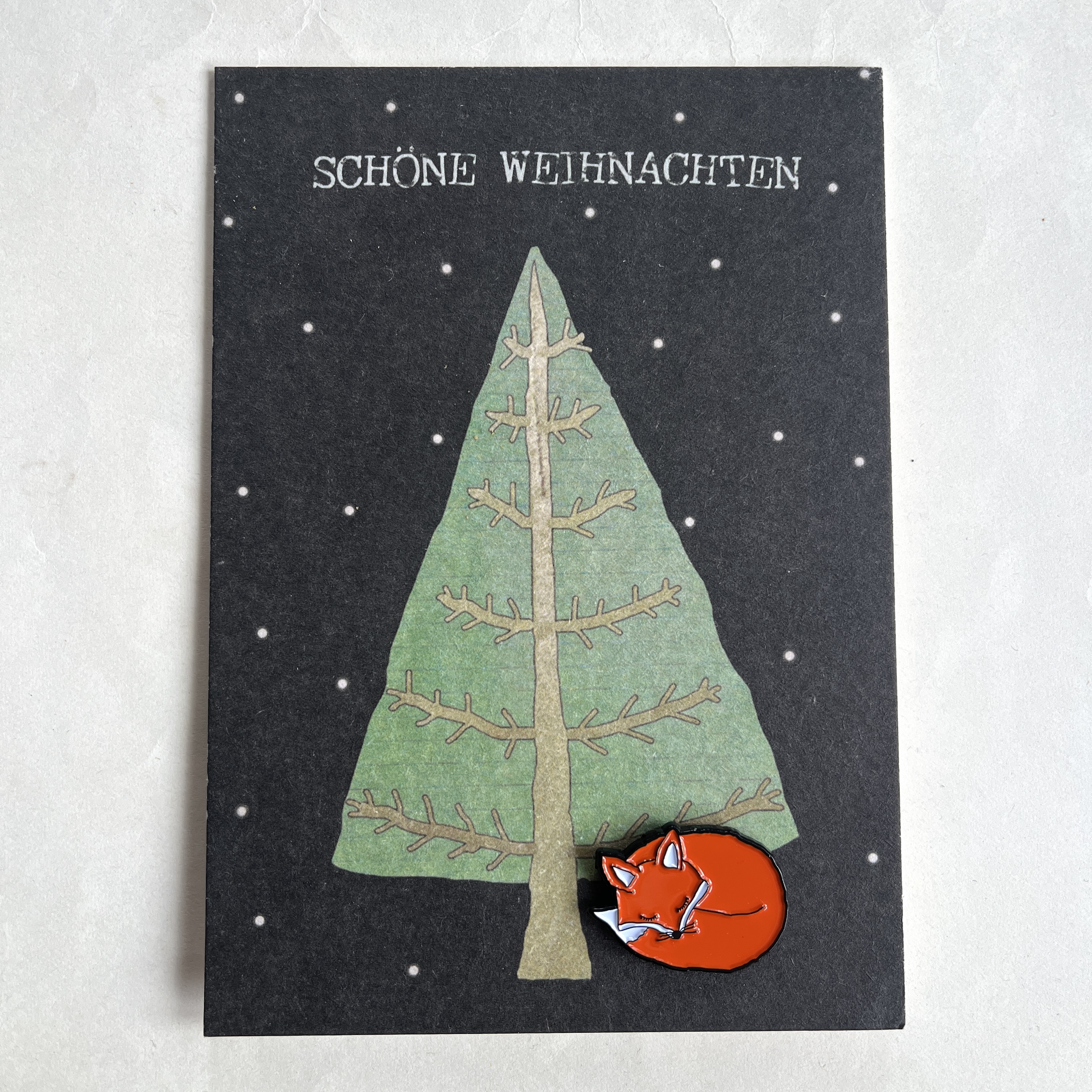 Dieser kleine Emaille-Anstecker wurde von uns entworfen. In Kombination mit der Karte aus Holzschliffpappe eignet sich dieser Pin ideal als Mitbringsel oder kleines Geschenk.