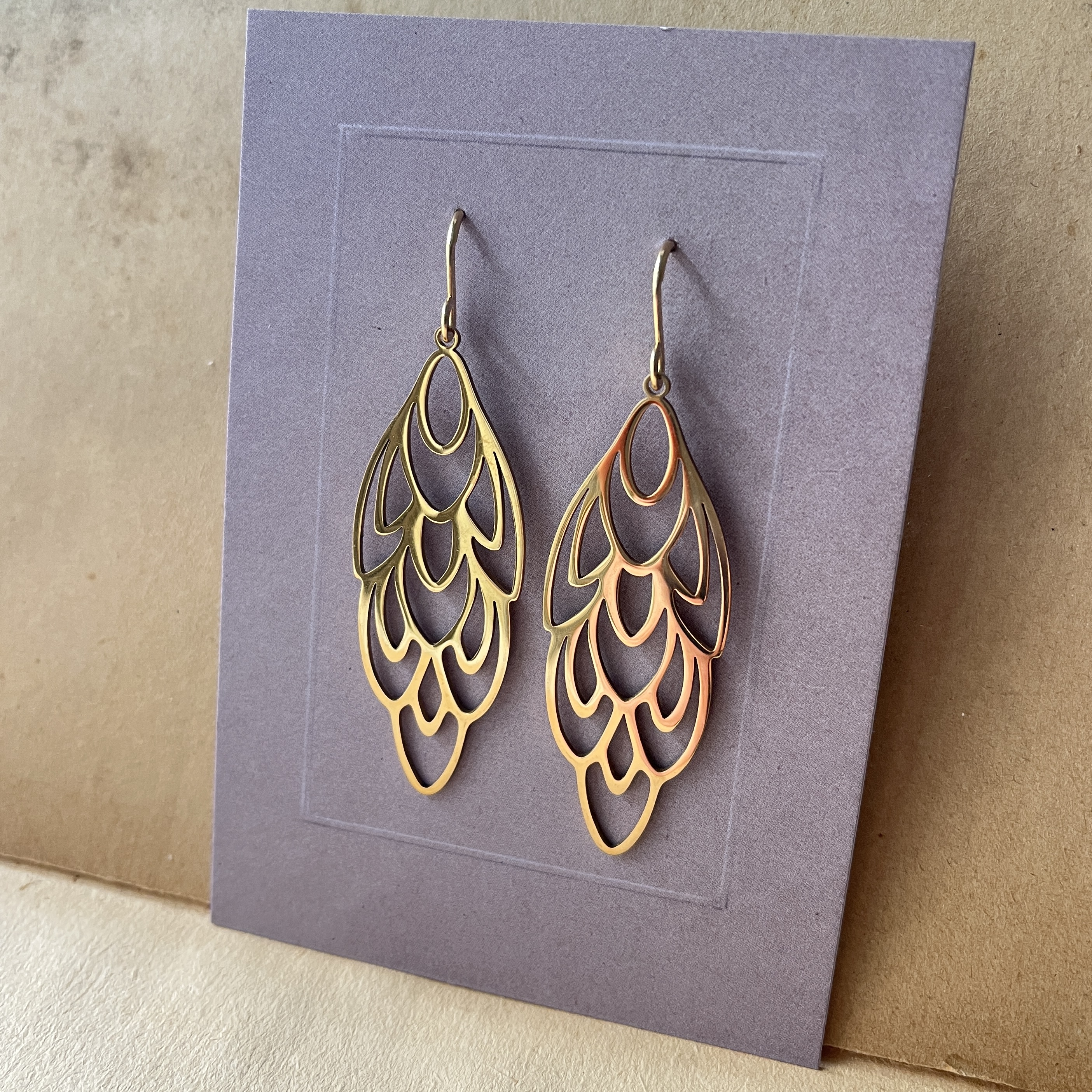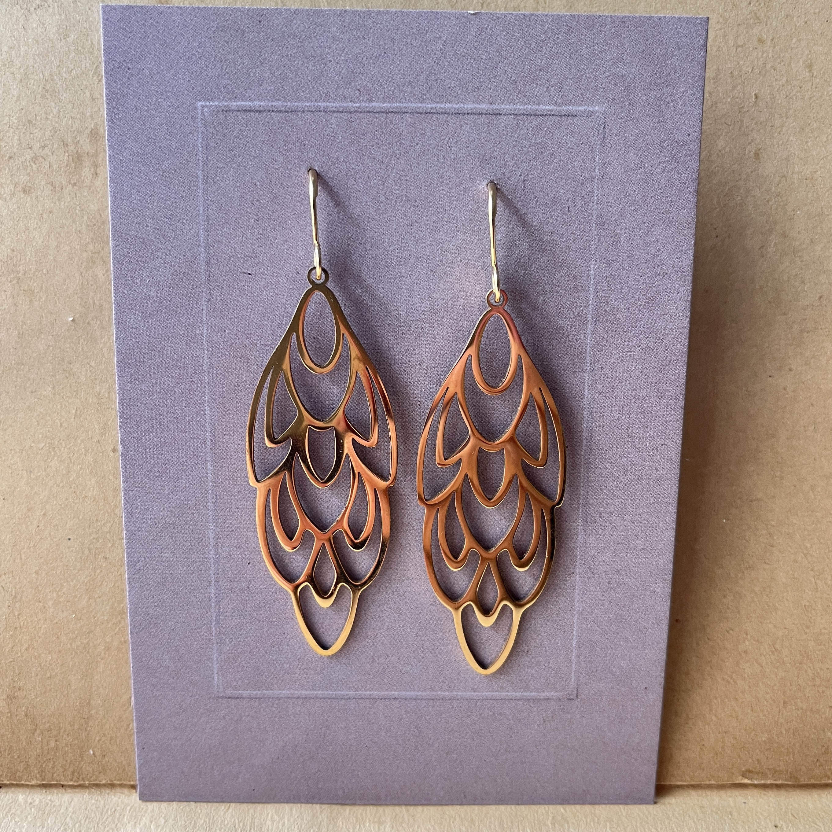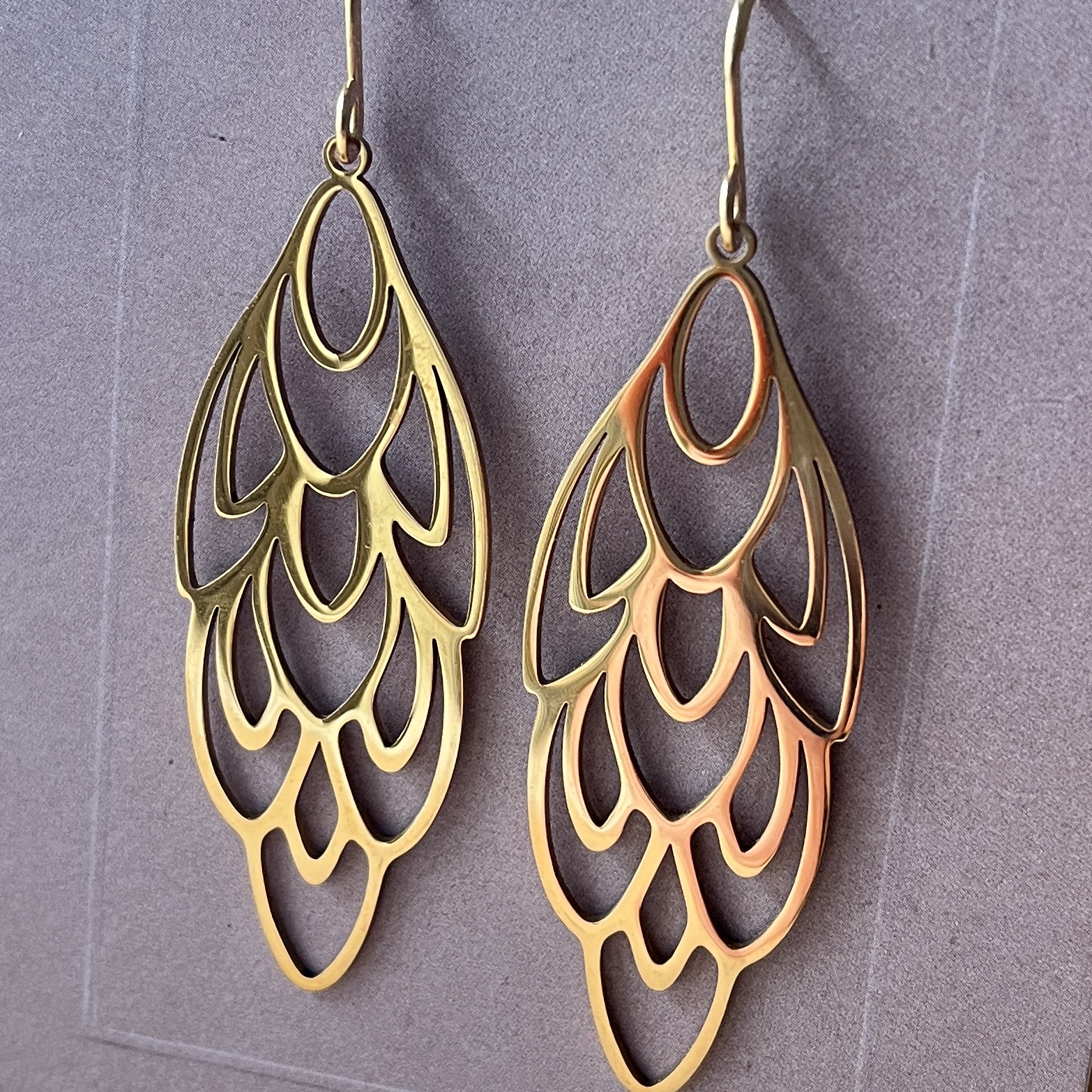 große vergoldete Edelstahl-Ohrhänger – Flügel – filigranes, geometrisches Design