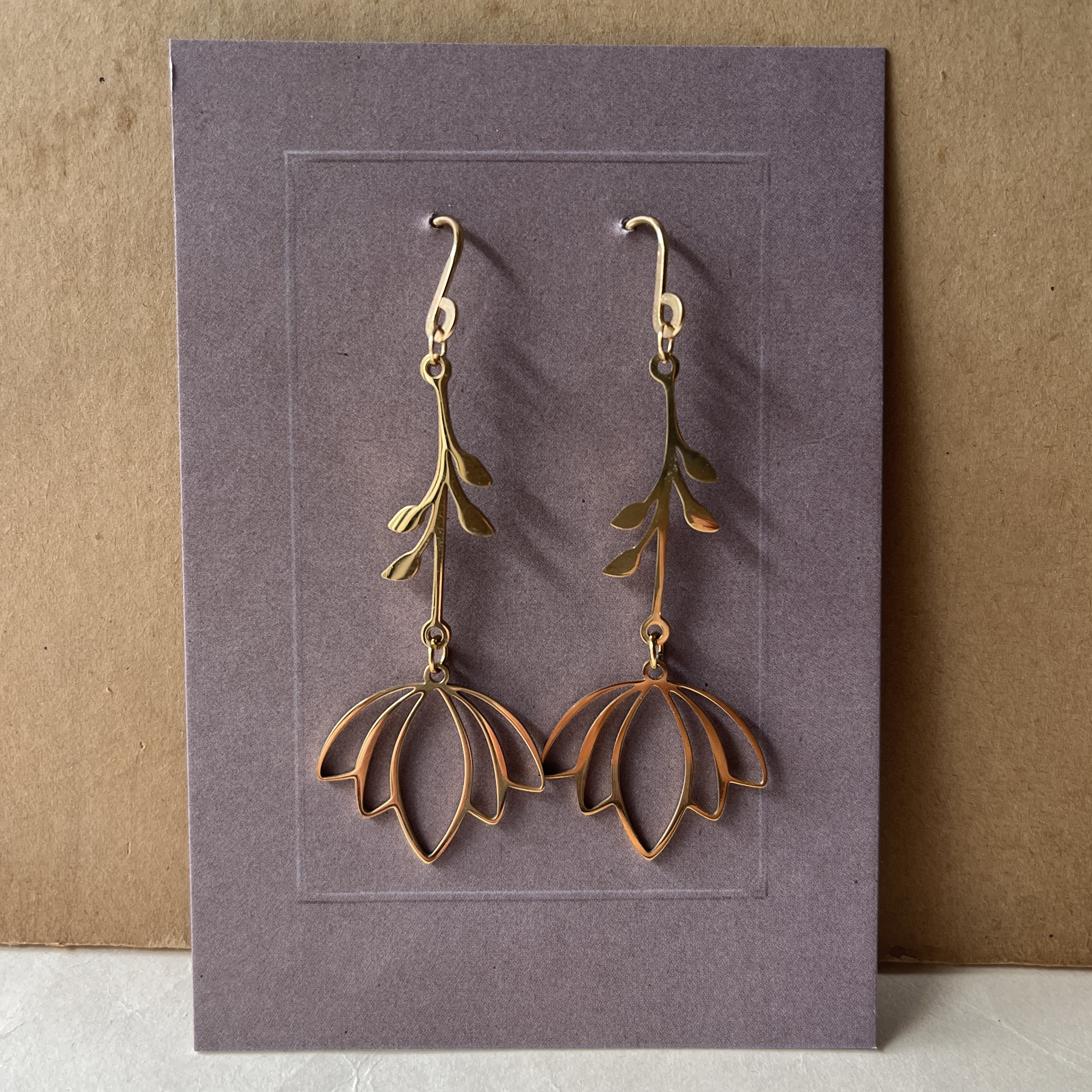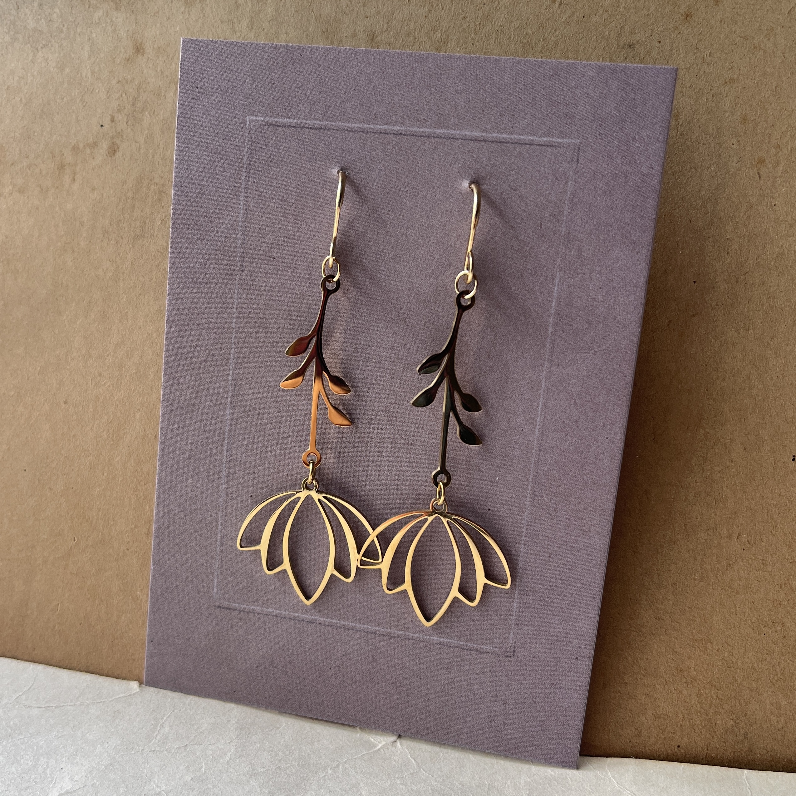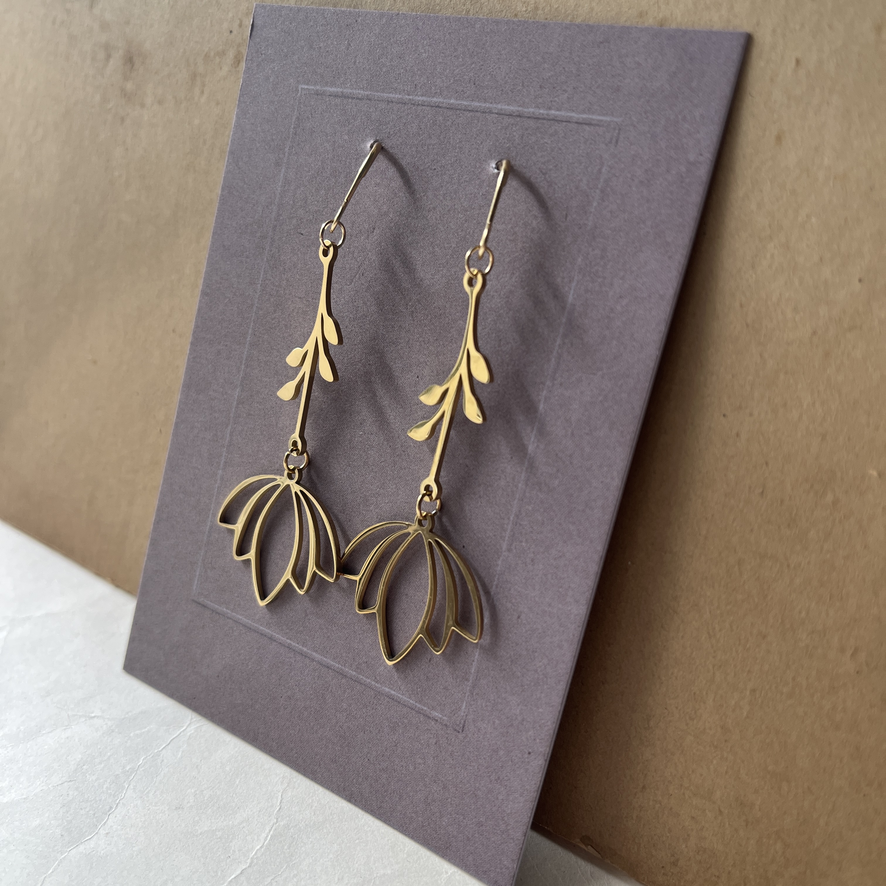 Vergoldete Edelstahl-Ohrhänger – kleine Knospe in geometrischer Form