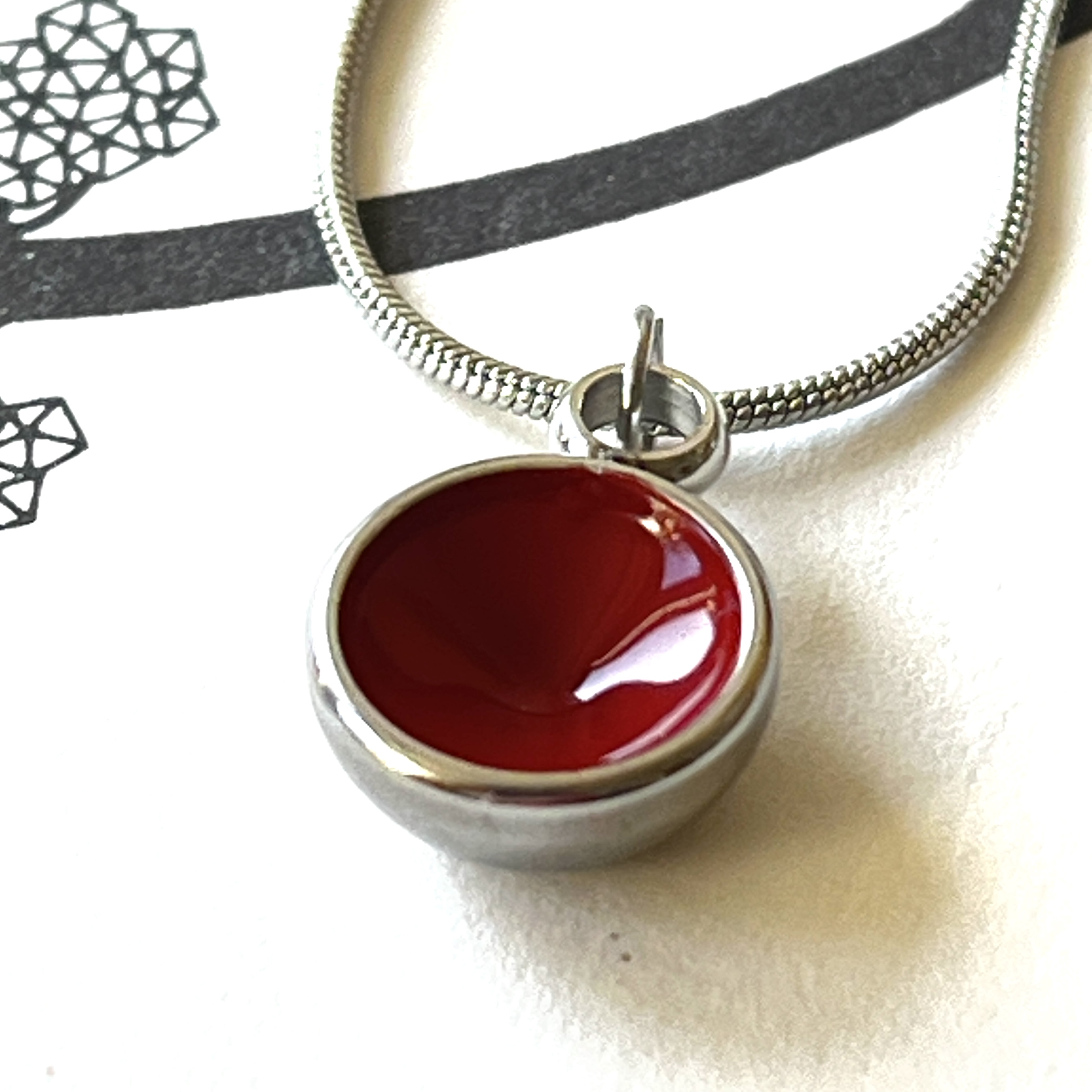 Dieser kleine Anhänger aus Edelstahl vereint minimalistisches Design mit einem faszinierenden Spiel von Licht und Farbe. Die konkave Schalenform erzeugt eine optische Täuschung – mal wirkt der Anhänger wie eine zarte Kugel, mal wie eine kleine Schale. Innen ist der Anhänger farbig lackiert.
