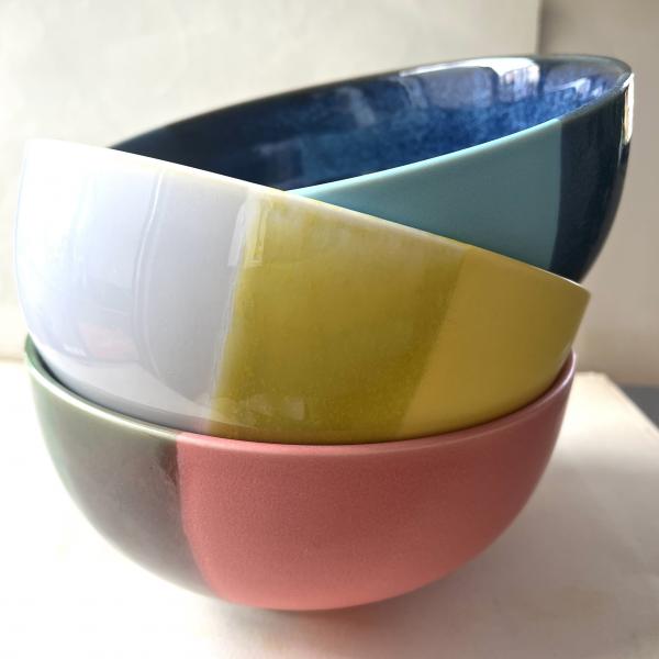 Schöne, robuste Schale in zweifarbiger Glasur. Jede Schale ist durch die Farbverläufe leicht unterschiedlich und dadurch ein Einzelstück.